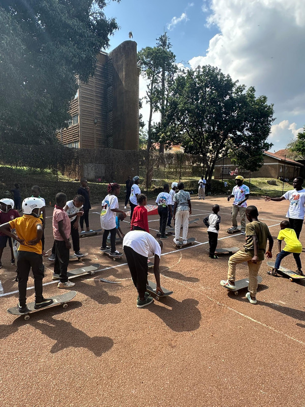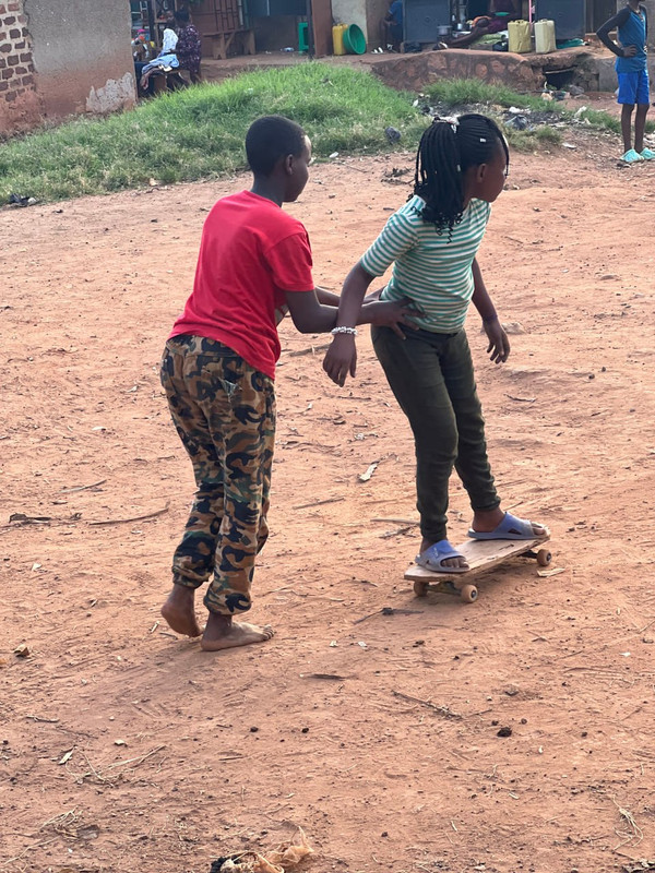 Annick Dhont cyclist under the European club All Ride Afrika, has been a strong supporter of young skaters, providing essential equipment and facilitating its shipment to Uganda. Through her travels in Uganda and East Africa, she has helped bring skateboarding gear to KSI (Kampala Skateboard Initiative), enabling local skaters to access better resources.