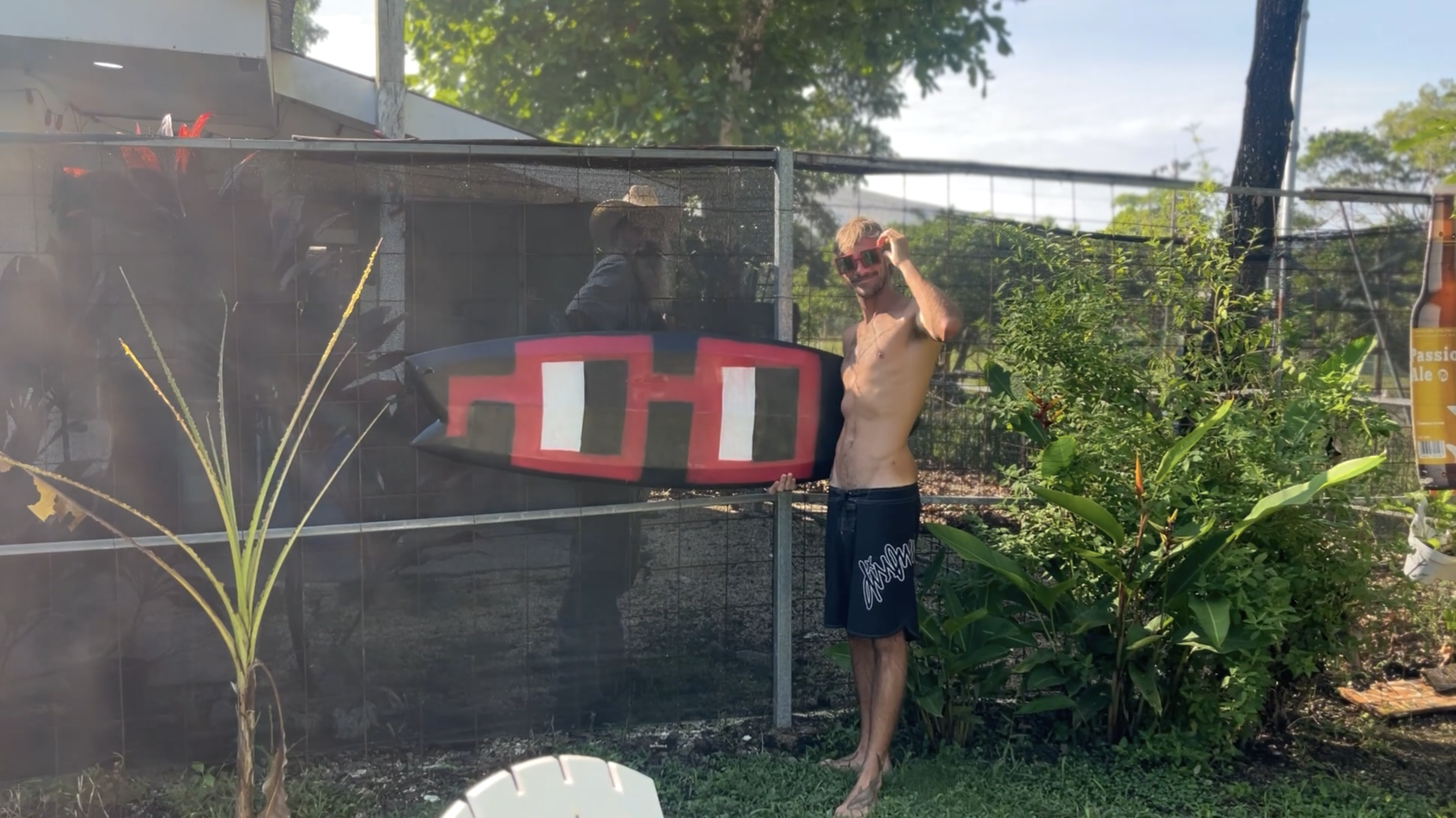 This Droposal aims to mint a video from a surf session in Playa Hermosa, Costa Rica, featuring surfer and artist zimardrp (aka me) testing the Sweet Amnesia 5'5 fish tail in a Nogglesboard shape, while wearing a collab shirt by ARDRP x Gnars with a pancake inspired design from that morning’s breakfast.