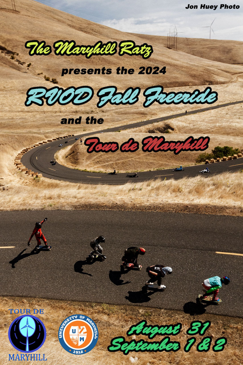 The Maryhill Ratz have been organizing events on Maryhill for longer than I’ve been skating and are one of, if not the most respected Freeride / race organizers in longboarding. The road itself is a historic landmark, being the first paved road in western America and an early attempt at creating switchback roads to make descending terrain easier for early cars. Now no longer part of the highway and located on private land, it remains a favorite spot for all types of downhill enthusiasts.