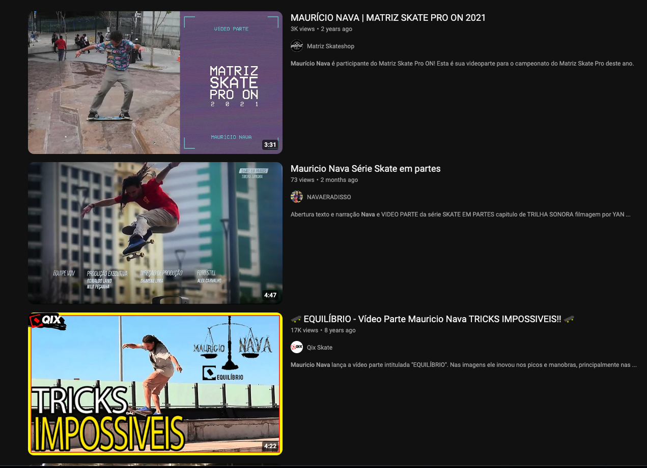 Hey guys! I'm Mauricio Nava, professional skater from Brazil, journalist, videomaker and drone pilot. I've been skating for 26 years, and almost all that time has been focused on skating, improving, traveling, and producing videos, events and documentaries throughout Brazil and World.